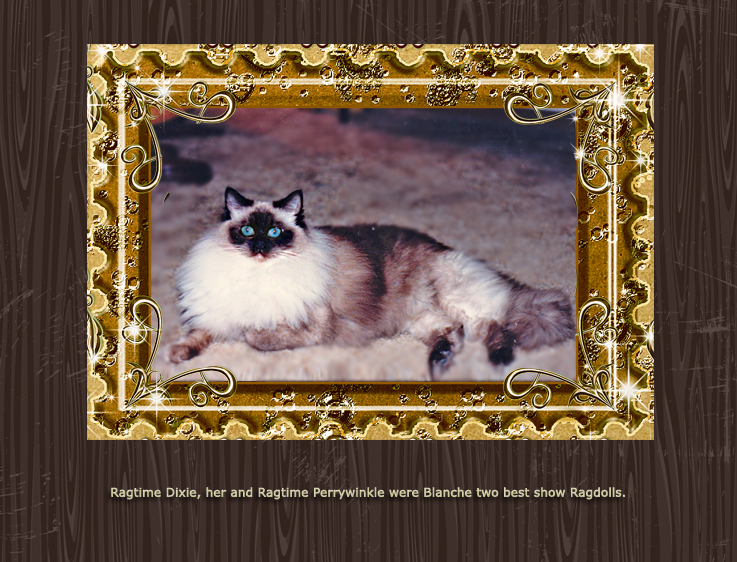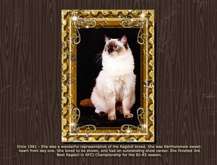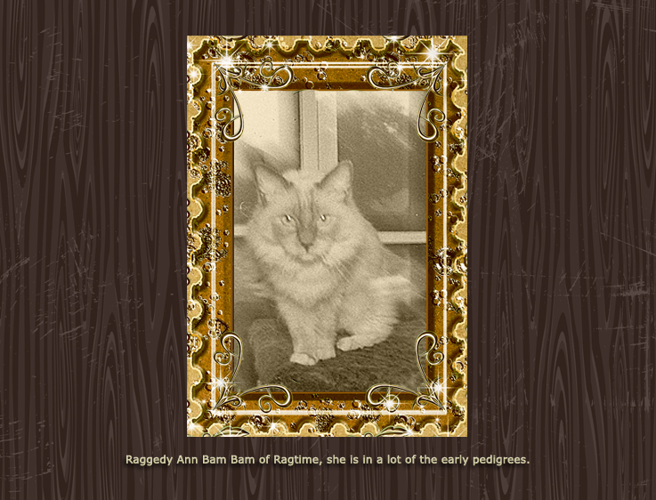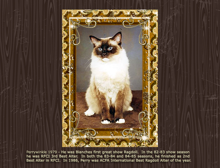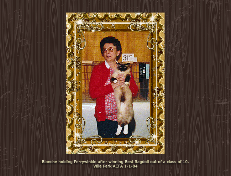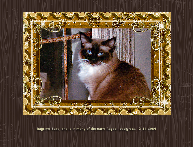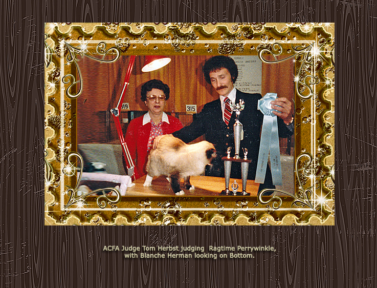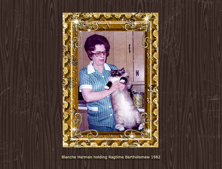 Blanche Herman’s cattery name was Ragtime. Blanche worked dilegently to promote the Ragdoll and gain acceptance in the various cat associations. Much of the information on this RHS website comes from her meticulous record-keeping and organized correspondence. The photos below show many Ragtime cats throughout the 1970s and 80s.